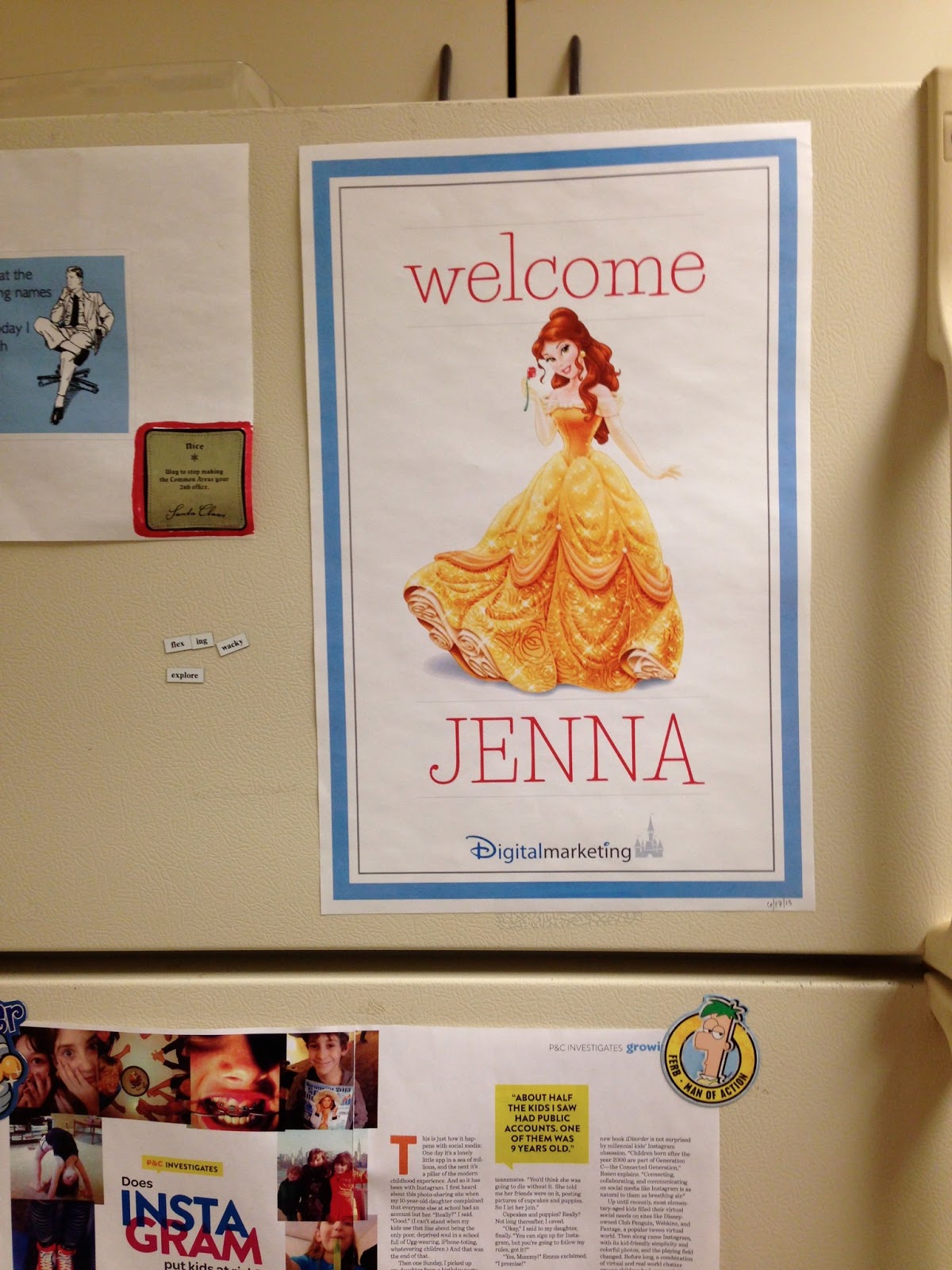 9am: I walked into 220 Celebration and sat in the lobby with other nervous Professional Interns until Kim Keller, my leader, came out and took me up to the 5th floor, where my office is located. The 5th floor is mainly compromised with marketing and sales folks for Disney Destinations, which includes the Parks & Resorts, Adventures by Disney, Disney Cruise Lines, and Aulani Resort in Hawaii. Kim took me into her office and discussed how the office was broken down and what I would be responsible for during my internship. I learned that Kim really wants me to be marketable after this internship, so I will be able to dip my feet into a lot of different departments other than my own. I will be working primarily with digital marketing strategy, but I will have the chance to work with activation (the team who carries out our strategy plans), community managers (the team who manages the Facebooks, Twitter handles, and other social media pages), and other departments within Digital Marketing.